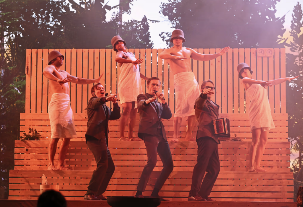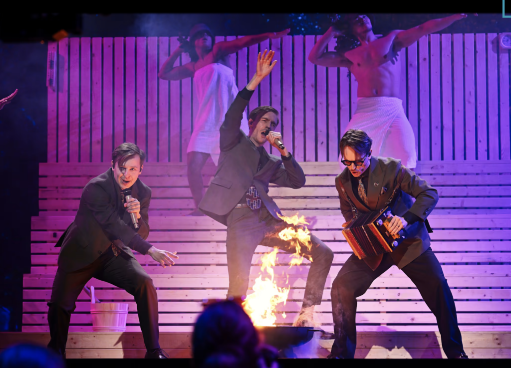 „Bastu“ ist schwedisch und heißt übersetzt Sauna, man hört das Wort „Badestube“ mit. Bara Bada Bastu kommt von einer finnischen Band, die, das ist das besondere, gestern Abend das Melodifestivalen 2025 gewonnen hat, das ist der schwedische Wettbewerb für den European Song Contest. Die Band heißt KAJ, sie kommt aus dem Österbotten, das ist die Provinz Finnlands, die an der Ostseeküste liegt und rüber nach Schweden zeigt. KAJ singt in dem dort bevorzugten schwedisch-finnischen Dialekt.