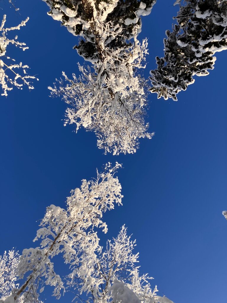 Der Schnee ist noch frisch und weiß. Es ist kalt, aber die Sonne wärmt schon. An den Zweigen bilden sich Tropfen, die bei der Kälte gleich wieder gefrieren. Alles ist voller glitzernder Perlen. Helmikuu heißt der Februar auf Finnisch – Perlenmonat.