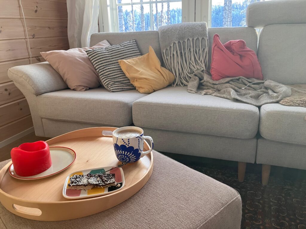 Nach dem Spaziergang: Kaffee und selbstgemachte Kokosriegel.
